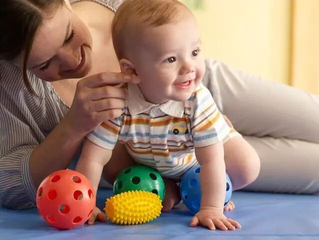 这个阶段,宝宝开始学习一些基本概念,如大小、形状、颜色等;小手较以前更加灵活;身体的运动能力也更强了。此时可以为宝宝准备一些玩具,帮助识别颜色,学习形状等概念,扩大知识范围。