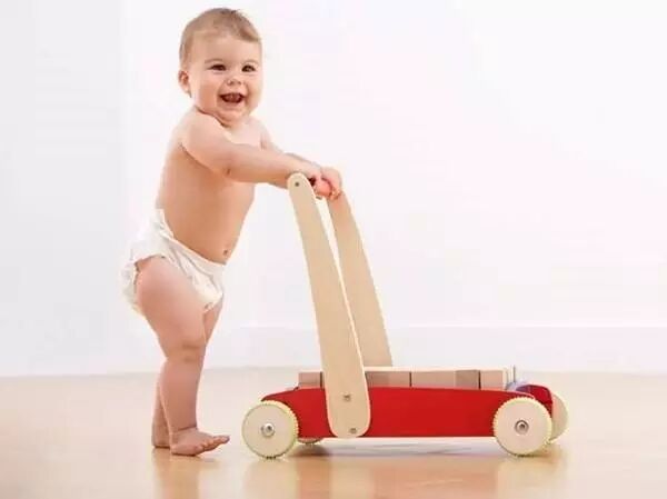 这时应选择一些机动的、带有响声的玩具,以提高宝宝走路的兴趣,锻炼行走能力。如:小推车、拖拉玩具、球类等。