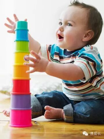 如果说一岁前孩子玩儿叠叠乐还只是在锻炼眼手协调准确度,一岁后就应该开始逻辑认知了,爸爸妈妈要教会孩子认识大小和排列物体。