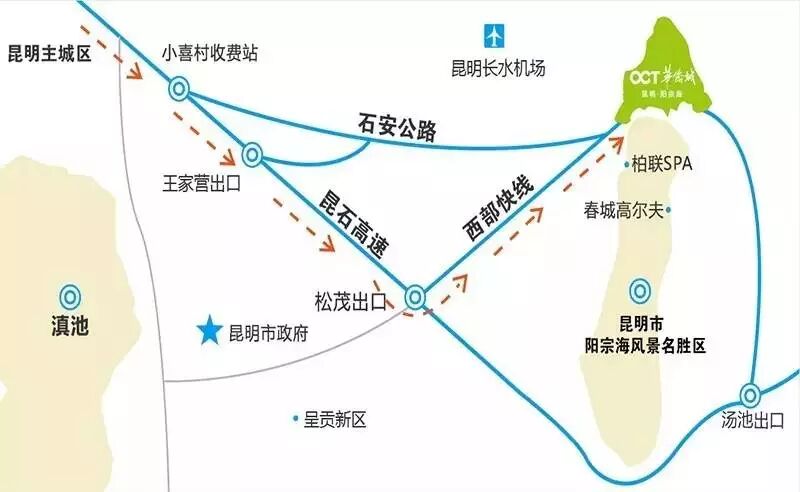 交通:昆明—昆磨高速—呈澄高速—凤翔路—澄阳路—澄华路—环湖东路