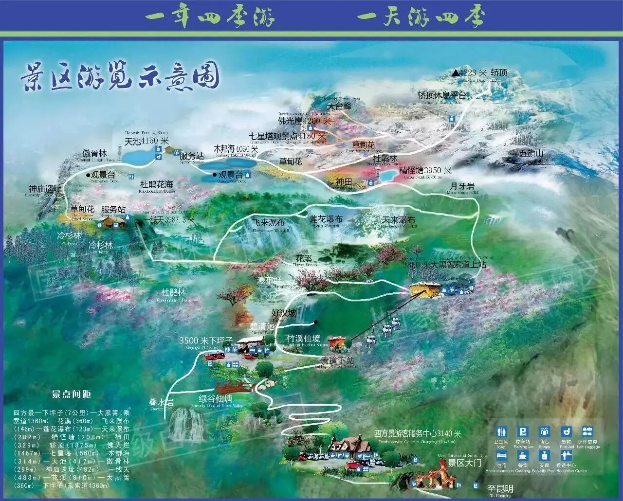 (轿子雪山游览示意图)