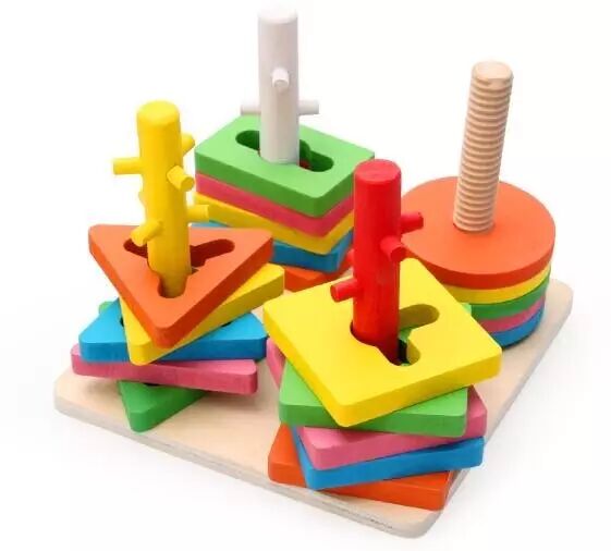 1、四套柱有不同的形状,宝宝可以加以辨认;