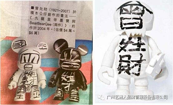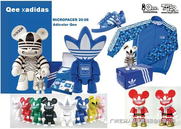Qee曾与多个名牌包括adidas、agnès b.、星巴克等进行Crossover,其每次合作推出的产品都定必成为收藏者的追捧,这只小熊已由单纯的玩具,渐变成收藏者的爱好,其中,由人称香港“九龙皇帝”曾灶财创作的Qee公仔,还在香港拍卖会被高价竞拍,收藏潜力备受肯定。