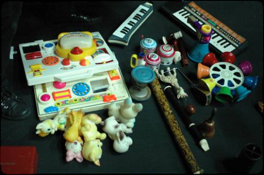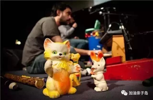 在这场演出中,除了玩传统的玩具钢琴、木琴、铁琴、笛子之外,艺术家们还加入了手风琴、老唱机、小型电吉他、乌克丽丽以及很多意想不到的可爱乐器与效果器。