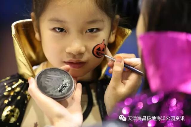 (无论是脸上画着南瓜图案还是贴着南瓜贴纸)