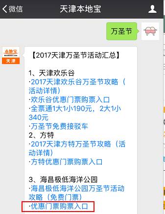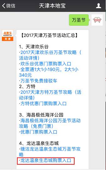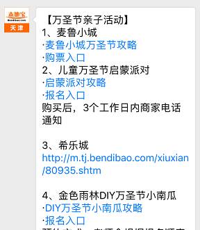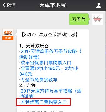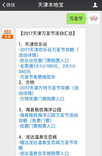 关注本公众号“天津本地宝”回复【万圣节】即可查询天津万圣节活动信息(鬼屋+亲子+化妆舞会)。回复【小区名+房价】如:时代奥城房价)即可查询该小区二手房最新价格。▼