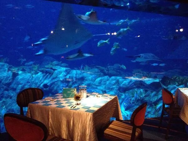 海龙王餐厅有超过5000条珍贵鱼类畅游的无敌景观,还有锤头鲨、角鲨、魔鬼鱼等难得一见的品种。