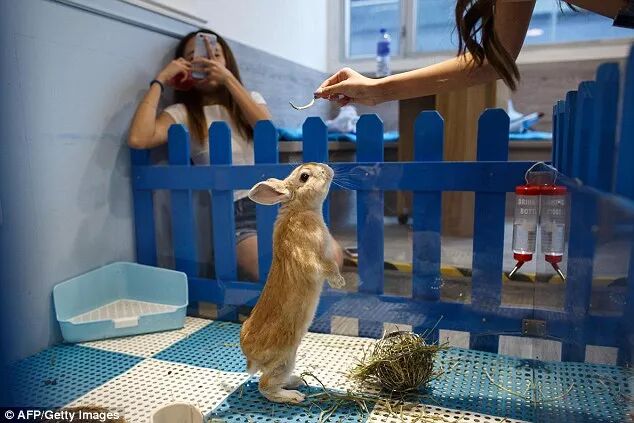Rabbitland Cafe要求每一位客人穿袜入内,与兔子玩耍时消毒双手,店里也只有淡淡的青草味儿!