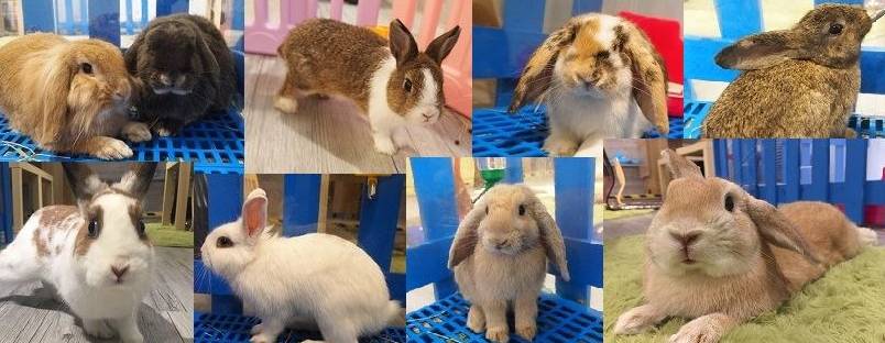Rabbitland Cafe有宾尼兔、垂耳兔、侏儒兔等各种兔兔,3个月至6岁大,每只都有诸如芝麻、绿豆、面包、栗子这样萌萌哒名字!