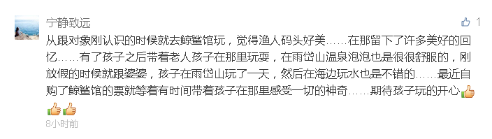 看着你们与鲸鲨海洋公园之间的点滴回忆,一幅幅欢乐的画面浮现在脑海,突然就想起自己刚来这里时的那年夏天,一股莫名的幸福感油然而生。