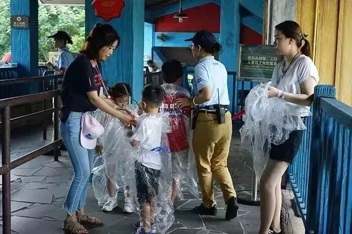 4, 一次性雨衣。如果打算玩水上过山车,可以自带,反正比姨妈巾还小,淘宝买1,2块一件,现场15一件,拖家带口人很多的,自带省钱哟!不要相信别人说的不穿雨衣不会打湿,那全靠运气。