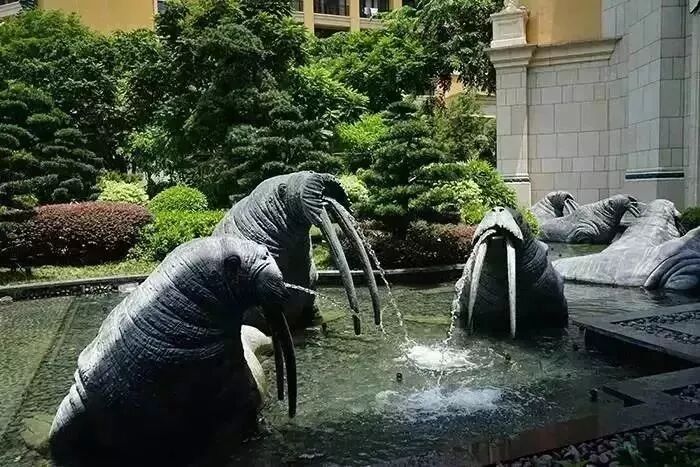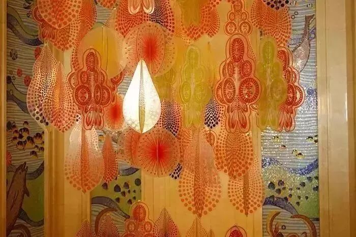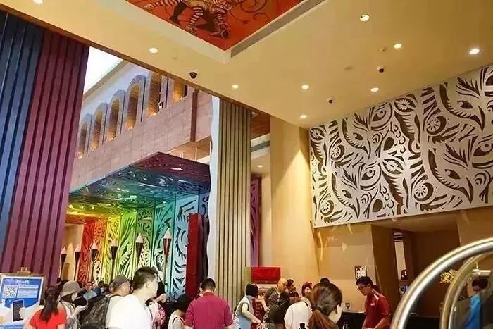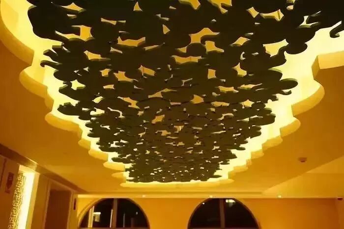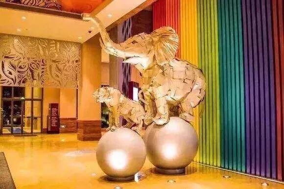 电梯间天花顶是什么?没错,是大象。每层的天花图案都不一样,一楼是帽子图案。