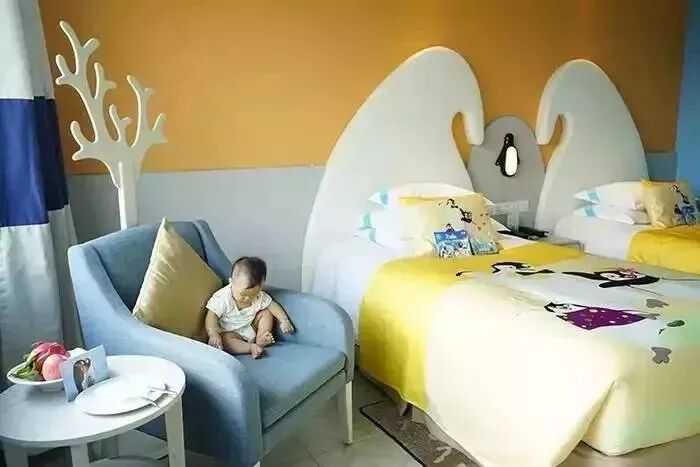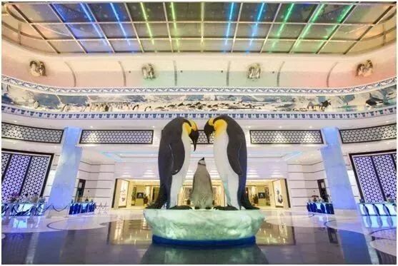 企鹅酒店里随处可见呆萌的企鹅,酒店大堂顶端是很多玻璃球,孩子会惊喜的发现里面有吹动的“雪花”,很温馨,也难怪孩子们都更喜欢企鹅酒店。