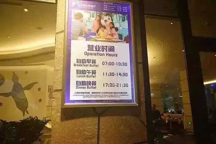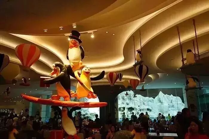 企鹅酒店的帝企鹅自助餐厅里也到处是企鹅装饰