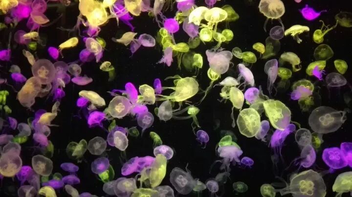 这是世界上zui大的水母展区,晶莹剔透的水母在光照下特别美。