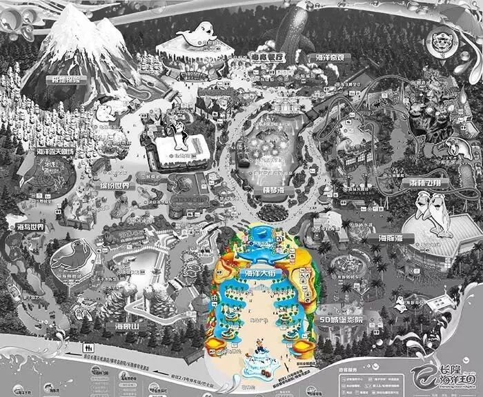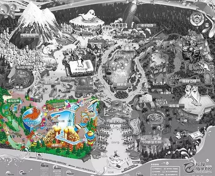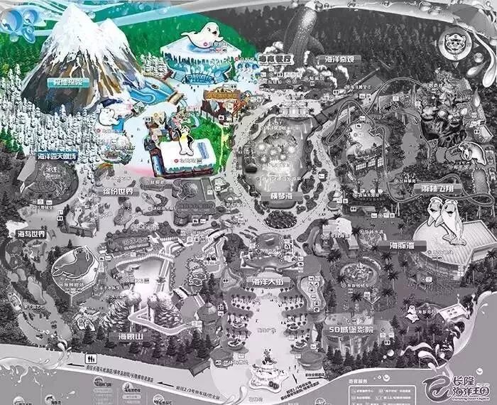重要展馆:鲸鲨馆、白鲸馆、海牛馆、北极熊馆、企鹅馆、海象岛等