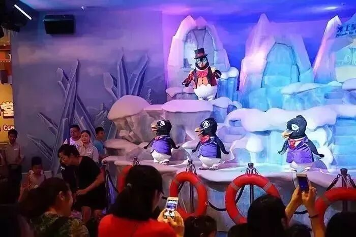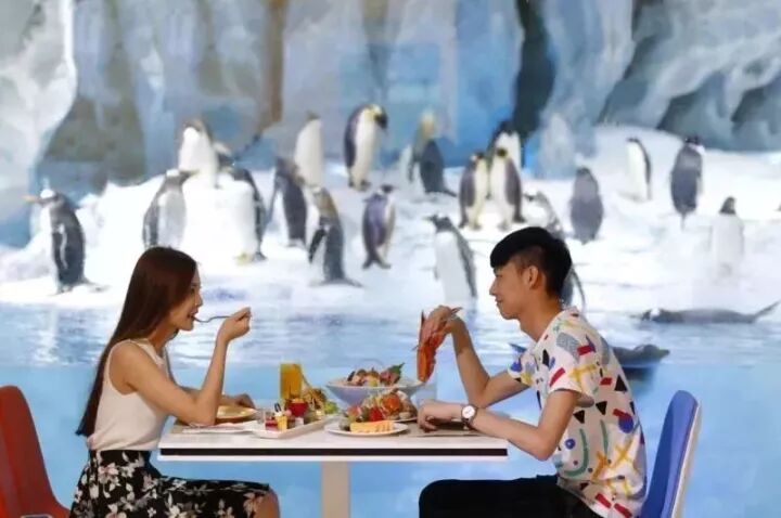 餐厅最大的特色是,里面有大型企鹅展馆,可以一边就餐,一边欣赏企鹅。