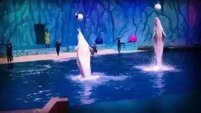 白鲸剧场比在白鲸馆看到的白鲸要漂亮清楚,不要错过白鲸表演哟!