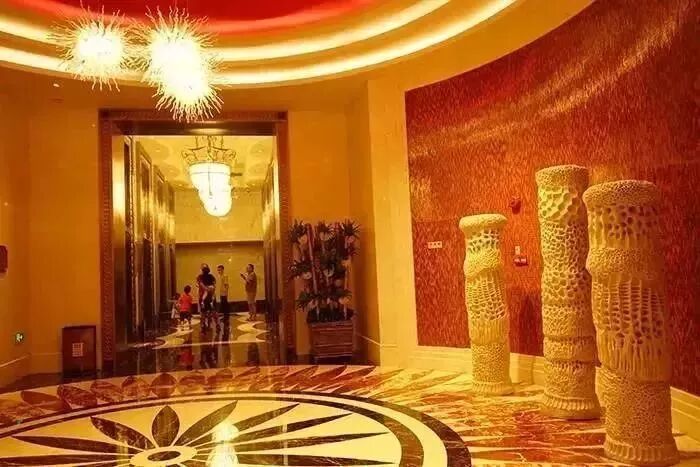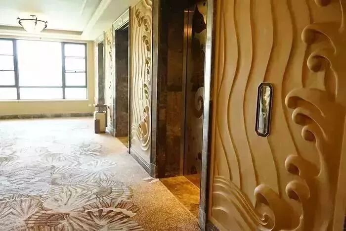 酒店每个地方都值得欣赏,这是走廊的墙体浮雕,地面是贝壳花纹