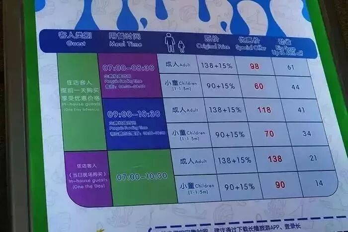 自助餐价目,个人建议订房时一起购买含餐套票更划算。