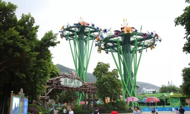 雨林升降塔,大小两个升降塔,一个是高25米的“花瓣降落伞”,足足有8层楼高;另外一个40米高,最高点可以鸟瞰大半个海洋王国。乘坐雨林升降塔,体验急速上升与下降,宛如探险家飞降热带丛林。