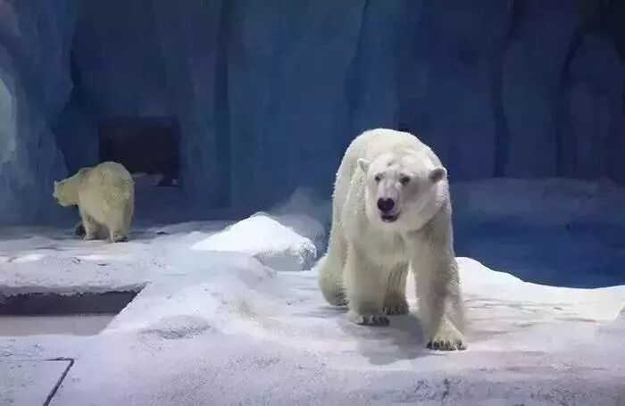 北极熊馆内的温度被调得很低。馆区不仅有北极熊,还有雪狐。