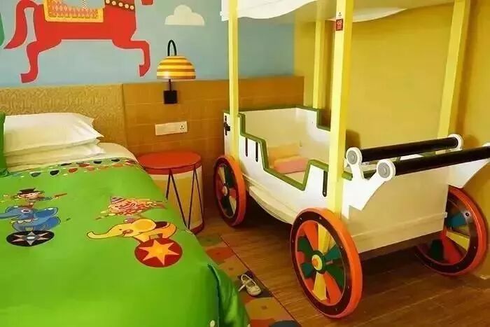 儿童床是个马戏车,很特别,但上铺不能睡哟