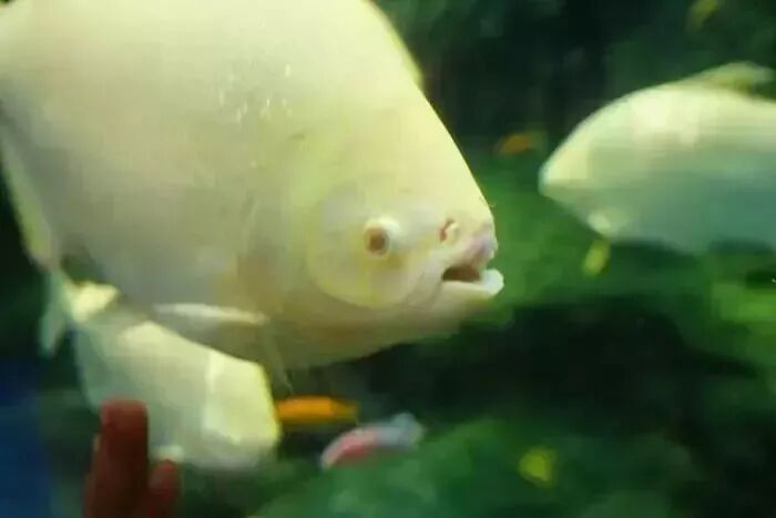 告诉你,这是食人鲳!吃人的!看着都怪吓人的,毛骨悚然~