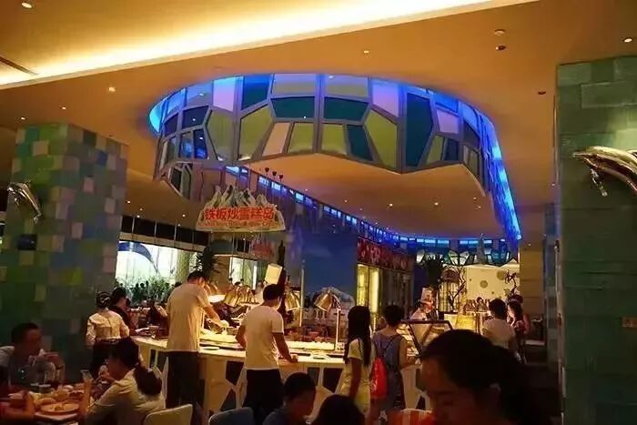 这是一楼的自助餐厅,三个超大的礁石柱