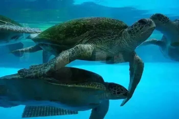 发光的海龟肚子里很多蛋,不少小朋友好奇的看看摸摸,甚至骑上去。