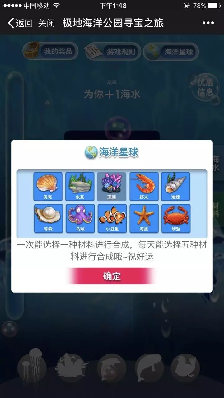 然后你就可以随机选5个海洋原材料,合成海洋生物。