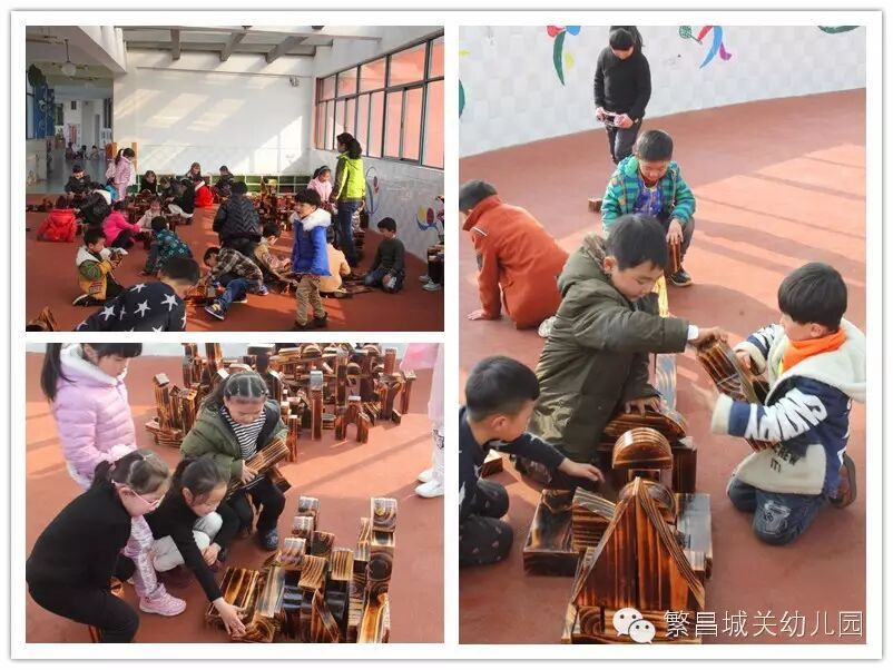 操场上可以拆装的多层次木制碳化积木让幼儿爱不释手,他们在随意排列、组合、拼搭的过程中,不仅丰富了主观体验,感受自己与同伴共同搭建的快乐,还能使他们在协商、谦让、交换的游戏氛围中,学会分享与合作,从而个性得到发展。