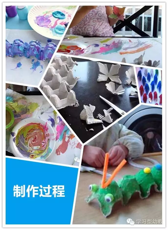 总结:彩绘,直接用色彩在蛋托表面画上美丽的图案,也可以用剪贴、添加的方法。