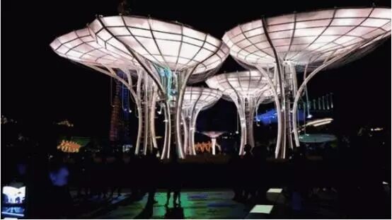 上海万象城抓住现代人对阳光、树木、水等自然环境的强烈回归意识,将自然元素融入设计中——主中庭空间竖向侧裙采用木纹贴膜铝板营造高耸入云的树木之感,半通透主中庭天棚,空间呈暖色系,线型灯光把人向上拉动,其采光天幕上双曲面立体造型铝板就像新生的的藤蔓攀附,让人惊叹造物的神奇,带来前所未有的感官体验。