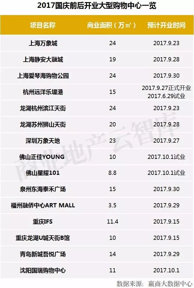 国庆前后半个月时间里,又一大波购物中心赶趟儿要开业了!包括上海万象城、深圳万象天地、重庆IFS、龙湖杭州滨江天街、青岛新城吾悦广场……