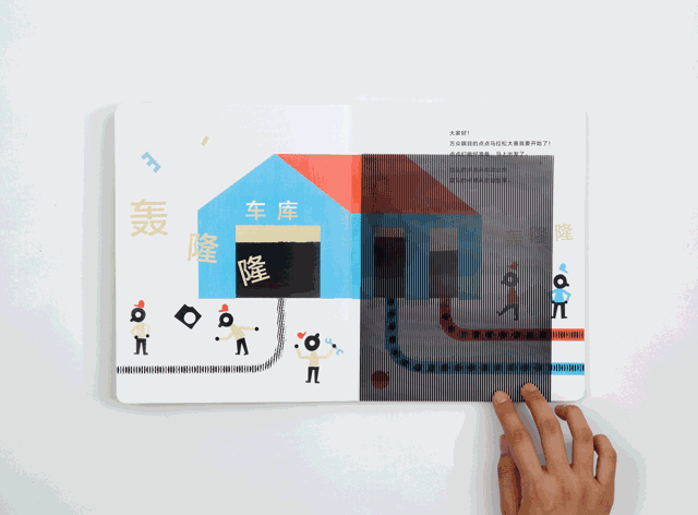 整一本书只有22页,但每一给翻页都非常有趣。和小伙伴一起来一场比赛吧,书的封套里有一张“魔法卡片”,拿出卡片,就开始进入神奇的“移动”世界咯~