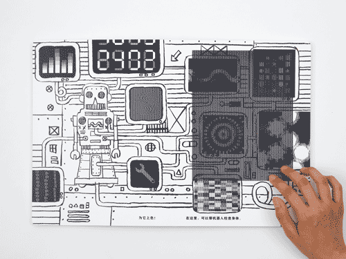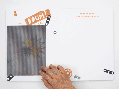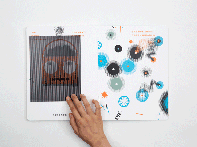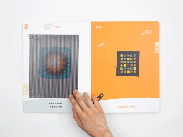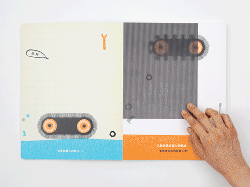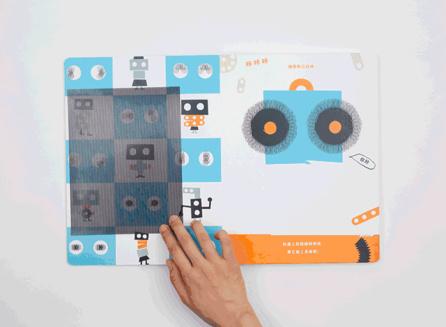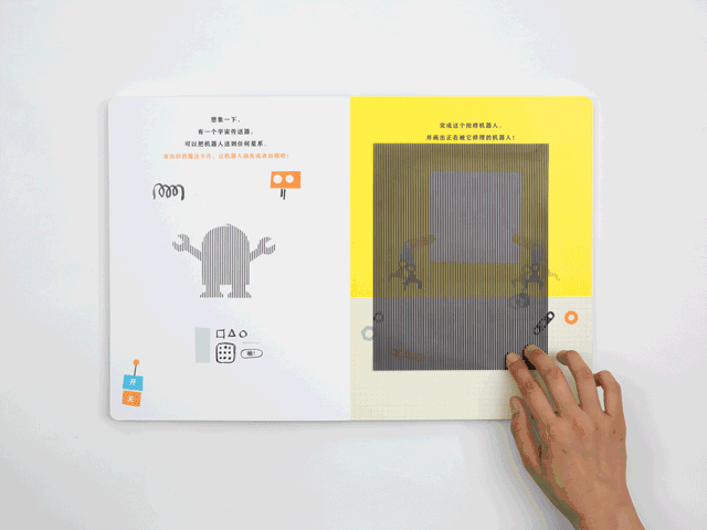 这是一个机器人,机器人会发生什么有趣的事情呢?书的封套里有一张“魔法卡片”,拿出卡片,就开始进入神奇的“移动”世界咯~