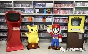 电脑游戏展厅...门前站的,是皮卡丘和超级马里奥...
