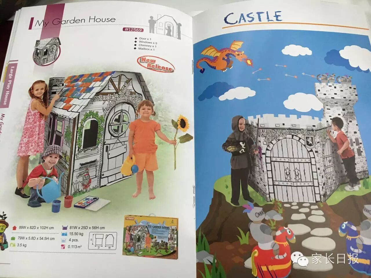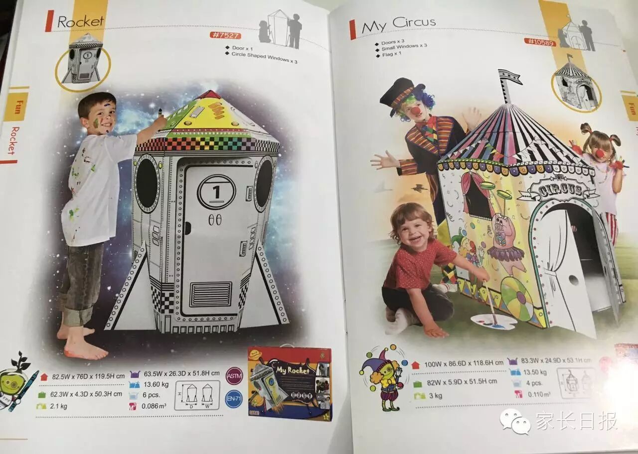 超大的纸盒玩具屋,有城堡、树屋、潜水艇、姜饼屋、马戏团、火箭、农场等等,全家一起拼起来之后,孩子可以跟小伙伴们一起钻进钻出,还可以拿颜料画出自己独有颜色的房子!
