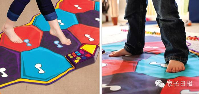 比如以串珠、软积木和猫琴而为大家熟知的B. toys,他们还推出了不少让我们觉得非常帅气的产品,比如有各种记忆、学习、娱乐模式的儿童跳舞音乐毯。选择不同的模式,从最简单的踩一踩就能弹出音乐或者有趣音效,到想办法用各种姿势踩到亮起的几盏灯,或者跟随记住越来越难的节奏,跳出一整首耳熟能详的童谣歌曲。不过其实即便是最简单的模式,也可以让派对上的小伙伴们玩的不亦乐乎。不同的难度模式,适合3-10岁不同年龄段的小朋友(和他们的家长们)。