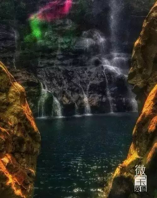 状似仙女般银发飞舞的娘娘潭瀑布。此瀑上有宽阔平台,水流湍急,极为壮观。下为深潭, 碧波荡漾,清澈见底。