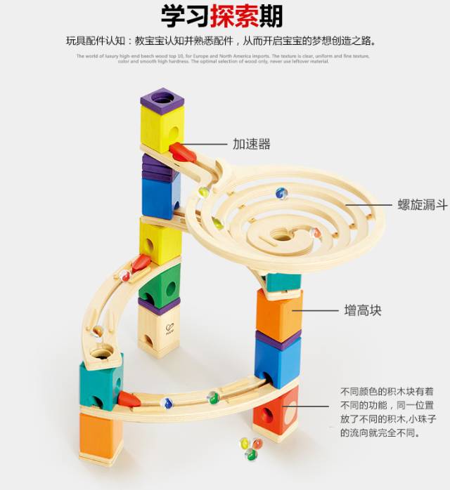 这个滚珠 + 轨道的玩具来自于Hape品牌中比较“高端”的一个系列——夸得瑞拉。