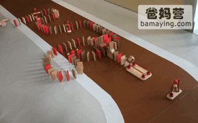 知识探索期:(力学知识探索)在摆放多米诺骨牌时,孩子可以思考“积木摆放疏密不同,撞击的力量会有什么不同?”,“这些小道具又都利用了什么力学原理?”……精密的思维能力和强大的空间想象力可以搭造更有趣的多米诺阵型。