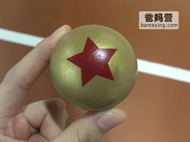 小道具里有一个滚球,刚开始还疑惑难道是金属制的。。。但拿到手上掂量后发现这是一个纯木质的滚球,使用的是进口荷木,完全不用担心会伤到孩子。滚球上印有醒目的红色五角星~