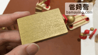 爸妈营在拆开积木后,就看到了被整套积木的色彩惊艳到了。整套积木分红色、金色和原木色三色,都是使用的进口榉木。