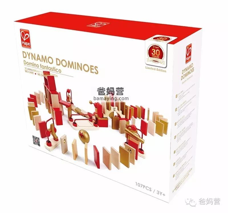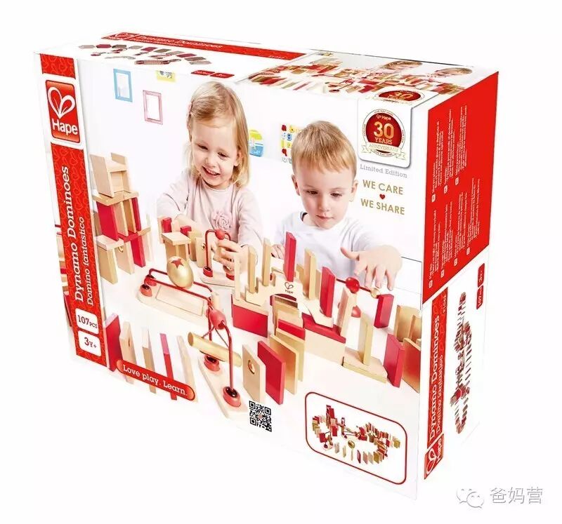 这套德国Hape的超级多米诺,这是为了纪念Hape30周年的特供版哦。积木颜色也特别加入了经典的红色与金色,和品牌loge非常配。