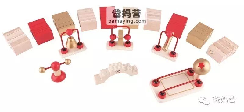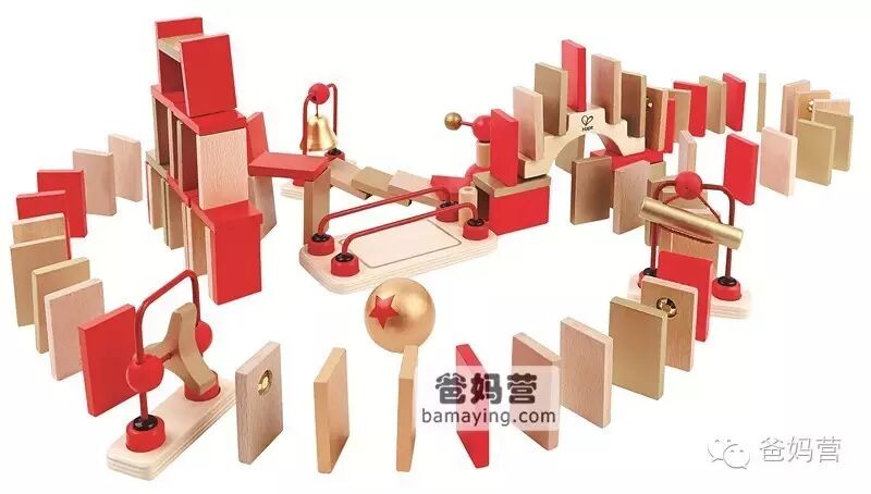细心的爸妈可能发现了,对比普通的多米诺玩具,这款Hape超级多米诺多了一些小道具。就是下面的撞铃、水车、滚球、杠杆、平衡木和木桥。增加这些道具后,这套多米诺玩具瞬间就能玩出更多的花样。。。