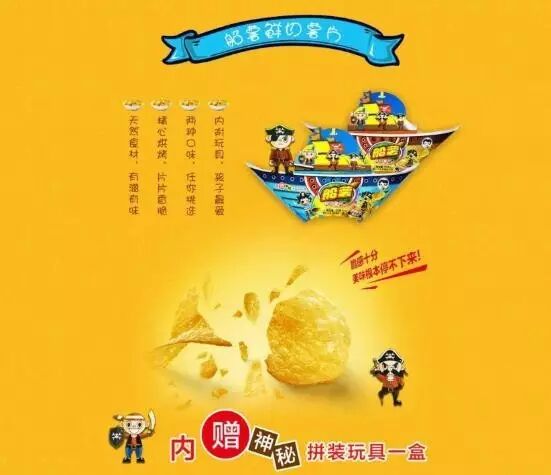 除了独一无二的外形设计,小船薯食材全部选自天然的优质马铃薯,经过精心烘烤、低温油炸工艺,产品将较膨化食品更加健康。在口味上也有多种口味可以挑选。在此之外,美家食品为食品增加了更多的趣味性,每一份产品都附赠有神秘玩具。从而让每一个消费了小船薯的小朋友,在享受美食的同时,也享受到玩具的乐趣!