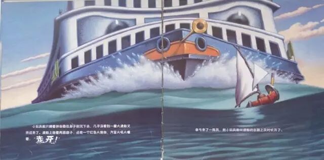 小男孩大叫:“哎呀!我的船!我的船!”可是没有用,已经来不及了。
