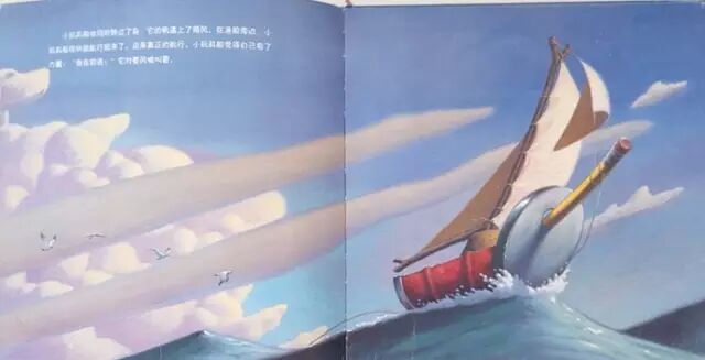 小玩具船也同时转过了身,它的帆遇上了顺风。在渔船旁边,小玩具船很快就航行起来了。这是真正的航行。小玩具船觉得自己有了力量!“我在前进!”它对着风喊叫着。